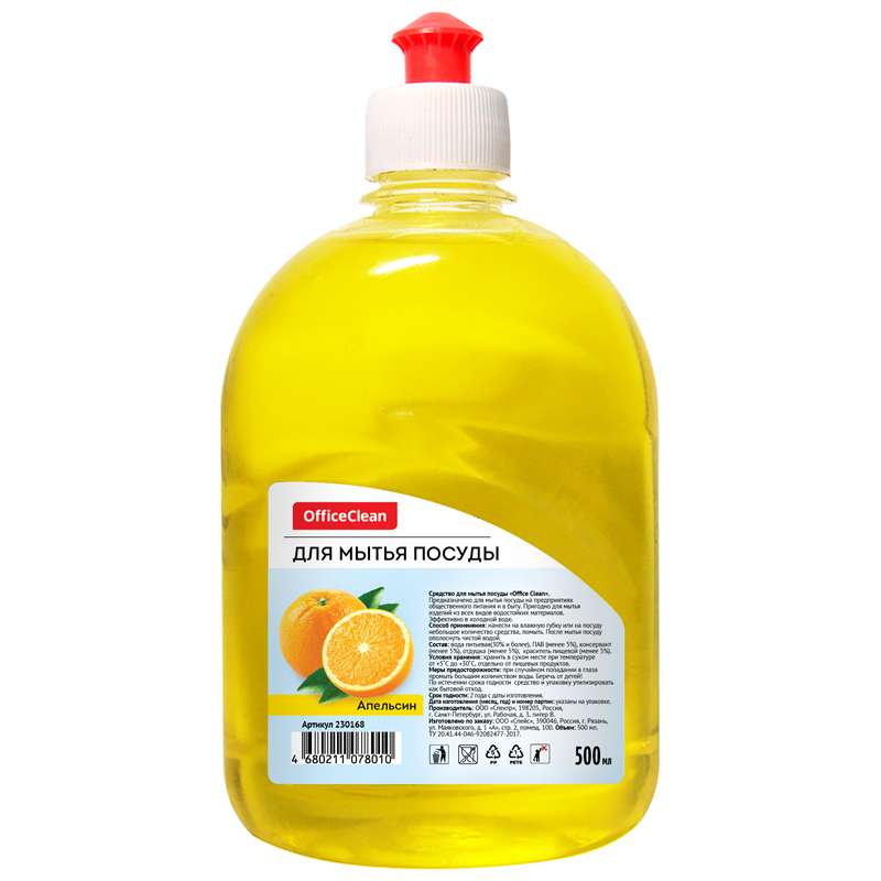 Главная / Товары / КАНЦТОВАРЫ / УПАКОВКА / ХОЗ ТОВАРЫ / РАСХОДНЫЕ МАТЕРИАЛЫ / Хозяйственные товары / Бытовая химия / Средство для мытья посуды / Средство для мытья посуды OfficeClean "Апельсин", пуш-пул, 0,5л