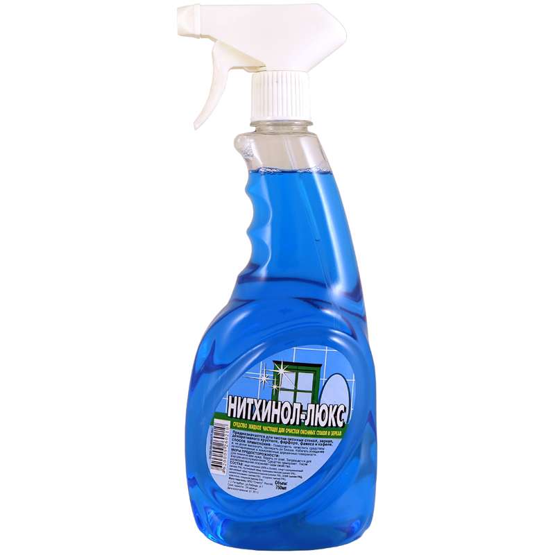 Средство для чистки оконных стёкол, зеркал, декоративного хрусталя, фарфора, фаянса и кафеля. Химический состав:вода, изопропиловый спирт менее 5%, этиленгликоль 1-1,5% ,композиция ПАВ 0,1-0,5%, отдушка, краситель206379 Средство для мытья стекол и зеркал Нитхинол-Люкс "Морская свежесть", 750мл ЧС-01 [РЦ]