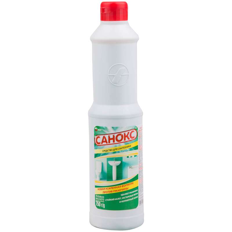 Средство чистящее для сантехники Санокс предназначено для чистки раковин, унитазов, фаянсовых изделий и кафеля от ржавчины, известковых отложений, жировых и прочих загрязнений. Уничтожает возбудителей всех кишечных инфекций. Способ применения: равномерно распределить средство по загрязненной поверхности и оставить на 5-10 минут, потереть губкой или щеткой, затем смыть водой. Содержит щавелевую кислоту. Пользуйтесь резиновыми перчатками. Не рекомендуется для чистки эмалированных поверхностей (кроме покрытий кислотостойкими эмалями).Чистящее средство для сантехники Санокс, 750мл
