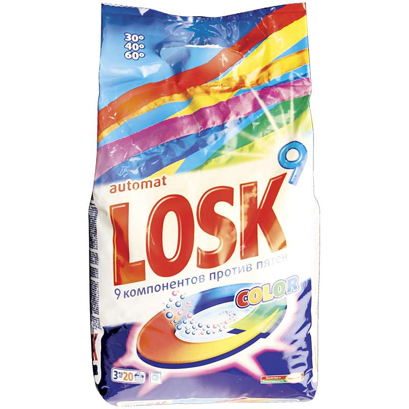 Главная / Товары / КАНЦТОВАРЫ / УПАКОВКА / ХОЗ ТОВАРЫ / РАСХОДНЫЕ МАТЕРИАЛЫ / Хозяйственные товары / Бытовая химия / Стиральные порошки / Стиральный порошок для машинной стирки Losk "Color", 3кг