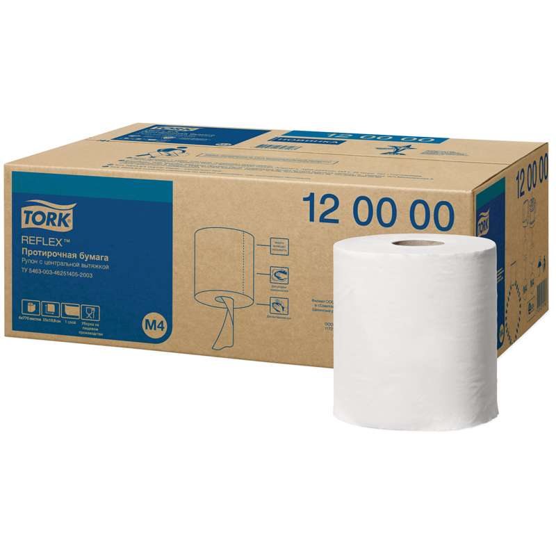 Протирочная бумага в рулоне с центральной вытяжкой (со съемной втулкой). Мягкая бумага для универсального применения. Быстро впитывает жидкости и масло. Профессиональный результат. Разрешено для использования в пищевом производстве.Протирочная бумага в рулонах Tork "Reflex"(M4) ЦВ, 1 слойн., 270м/рул, белый