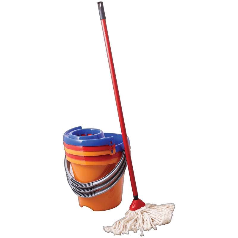 В этот комплект входит черенок 110 см, классический хлопковый МОП и овальное 12 литровое ведро с отжимом. Весь комплект в целом, идеально подходит для проведения влажной уборки дома. Цвета: оранжевый, синий, красный.Комплект Svip швабра с насадкой МОП + ведро, пластик, ассорти