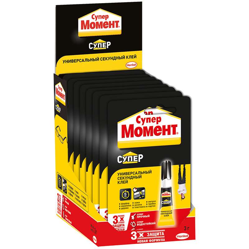 Главная / Товары / КАНЦТОВАРЫ / УПАКОВКА / ХОЗ ТОВАРЫ / РАСХОДНЫЕ МАТЕРИАЛЫ / Хозяйственные товары / Клей универсальный / Клей Момент "Супер", 3г, блистер, шоу-бокс