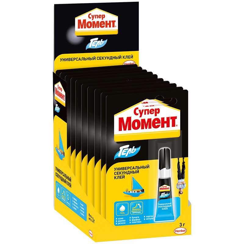 Супергель-клей «Момент» предназначен для проведения всех видов быстрых ремонтных работ. В состав геля входит этилцианакрилат, поэтому клей не растекается и не капает. Супергель моментально склеивает такие материалы, как фарфор, керамика, кожа, резина, картон и многое другое. Клей также рекомендуется использовать при проведении работ на вертикальных и пористых поверхностях.Клей "Момент Супер-гель, 3г, блистер-шоубокс
