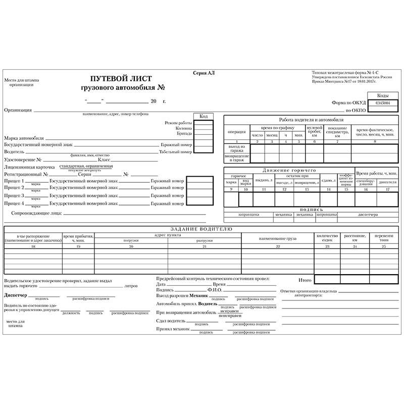 Главная / Товары / КАНЦТОВАРЫ / УПАКОВКА / ХОЗ ТОВАРЫ / РАСХОДНЫЕ МАТЕРИАЛЫ / Канцелярские товары - Офисные / Бумажная продукция для офиса / Бланки / Бланки бухгалтерские / Бланк "Путевой лист грузового автомобиля" А4 (4С-без талона от 18.01.2017г) оборот., газет., 100 экз