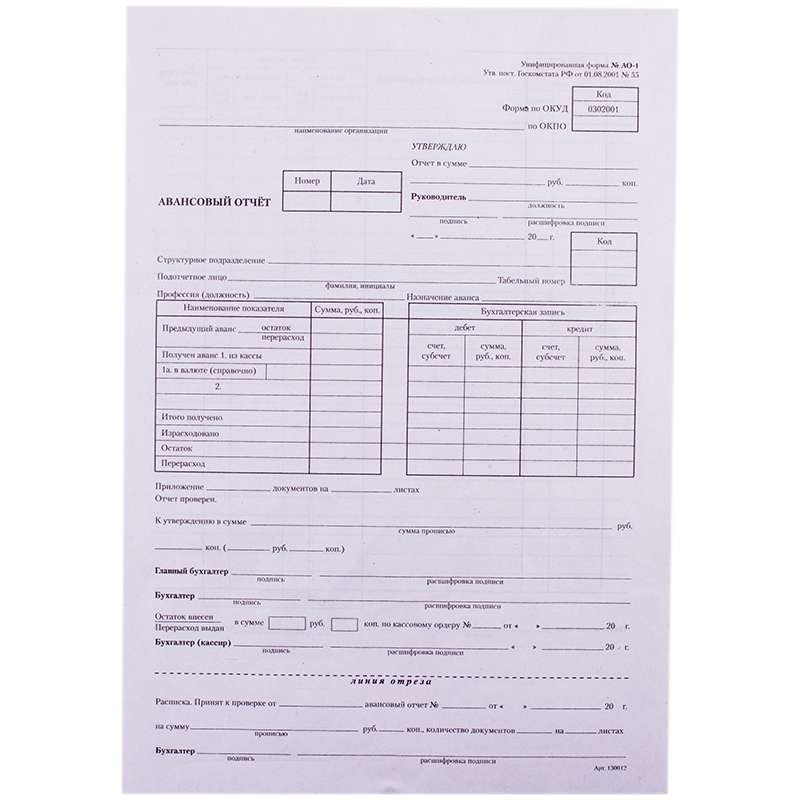 Бланк "Авансовый отчет" OfficeSpace, А4 (форма АО-1) оборотный, газетка, 100экз.