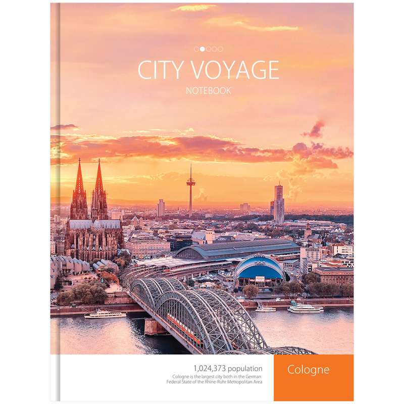 Бизнес-блокнот формата А4 с 5-ти цветным внутренним блоком. Бумага - офсет 60 г/м2, белизна 100%, клетка.Бизнес-блокнот А4 80л. OfficeSpace "Города. City voyage", 5-цветный блок, глянцевая ламинация