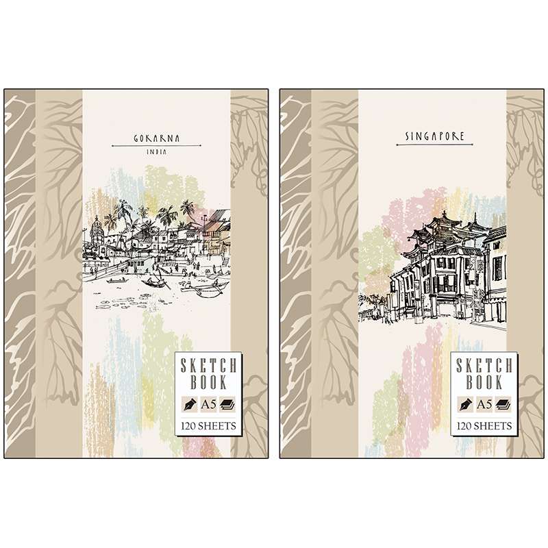 Формат А5. Обложка -твердый переплет с матовой ламинацией. Внутренний блок -офсетный, 65 г/м2, блок тонированный бежевый, без линовкиБизнес-блокнот А5 120л. "Зарисовки путешественника", матовая ламинация, бежевый блок, без линовки