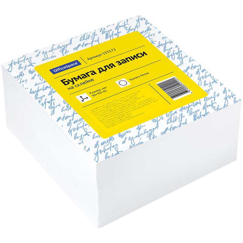 Главная / Товары / КАНЦТОВАРЫ / УПАКОВКА / ХОЗ ТОВАРЫ / РАСХОДНЫЕ МАТЕРИАЛЫ / Канцелярские товары - Офисные / Бумажная продукция для офиса / Бумага для заметок, блокноты, записные книжки / Блоки для записей / Блок для записи на склейке OfficeSpace, 9*9*4,5см, белый
