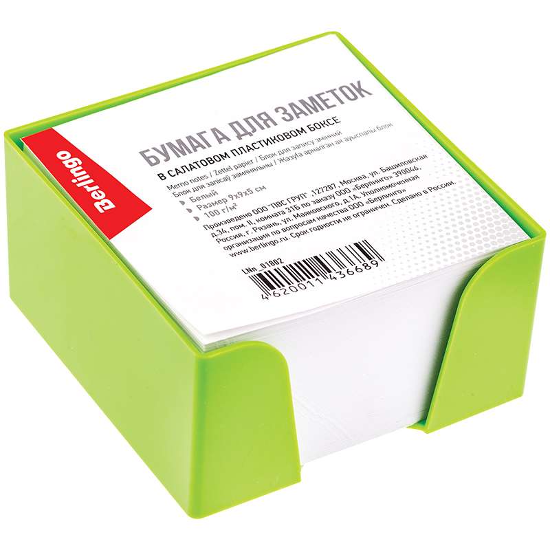 Главная / Товары / КАНЦТОВАРЫ / УПАКОВКА / ХОЗ ТОВАРЫ / РАСХОДНЫЕ МАТЕРИАЛЫ / Канцелярские товары - Офисные / Бумажная продукция для офиса / Бумага для заметок, блокноты, записные книжки / Блоки для записей / Блок для записи Berlingo, 9*9*5см, салатовый пластиковый бокс, белый