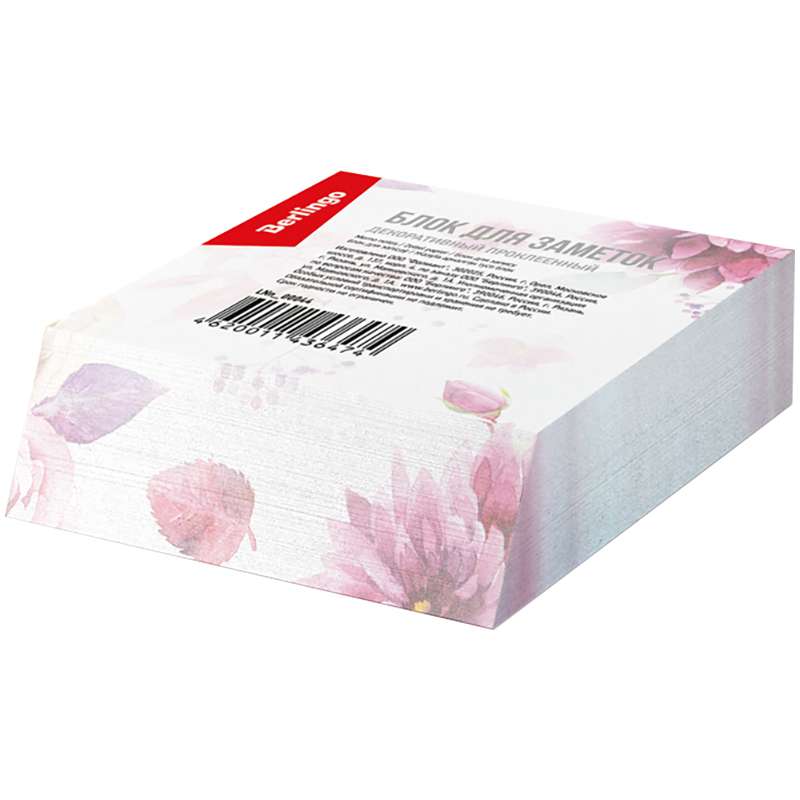 Декоративный блок для записей с косым срезом. В блоке 300 листов. Бумага офсетная 70 г/м2, с оригинальным рисунком. Проклеен по одному краю. Индивидуальная упаковка в термоусадочную плёнку.Блок для записи декоративный на склейке Berlingo "Цветы", 9*11*3см