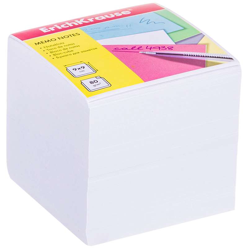 Блок для оперативных записей, 900 листов, белый. Размер листа в блоке - 90 × 90 мм. Бумага плотностью 80 г/м². Индивидуальная упаковка в термоусадочную пленку.Блок для записи Erich Krause, 9*9*9см, белый