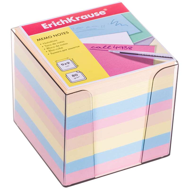 Блок для оперативных записей в пластиковом боксе, 1000 листов, цветной. Размер листа в блоке - 90 × 90 мм. Бумага плотностью 80 г/м². Индивидуальная упаковка в термоусадочную пленку.Блок для записи Erich Krause, 9*9*9см, пластиковый бокс, цветной