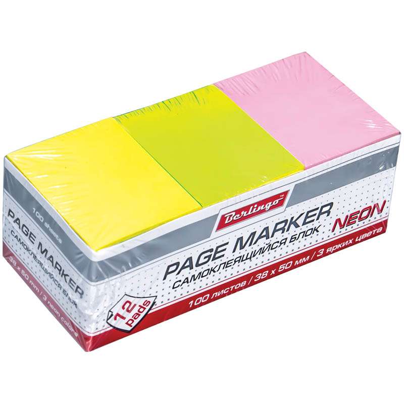 Главная / Товары / КАНЦТОВАРЫ / УПАКОВКА / ХОЗ ТОВАРЫ / РАСХОДНЫЕ МАТЕРИАЛЫ / Канцелярские товары - Офисные / Бумажная продукция для офиса / Бумага для заметок, блокноты, записные книжки / Блоки самоклеящиеся / Самоклеящийся блок Berlingo, 38*50мм, 12 блоков по 100л, 3 неоновых цвета