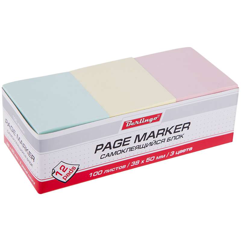 Главная / Товары / КАНЦТОВАРЫ / УПАКОВКА / ХОЗ ТОВАРЫ / РАСХОДНЫЕ МАТЕРИАЛЫ / Канцелярские товары - Офисные / Бумажная продукция для офиса / Бумага для заметок, блокноты, записные книжки / Блоки самоклеящиеся / Самоклеящийся блок Berlingo, 38*50мм, 12 блоков по 100л, 3 пастельных цвета