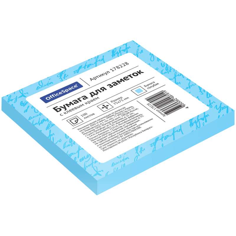 Главная / Товары / КАНЦТОВАРЫ / УПАКОВКА / ХОЗ ТОВАРЫ / РАСХОДНЫЕ МАТЕРИАЛЫ / Канцелярские товары - Офисные / Бумажная продукция для офиса / Бумага для заметок, блокноты, записные книжки / Блоки самоклеящиеся / Самоклеящийся блок OfficeSpace, 75*75мм, 100л, голубой