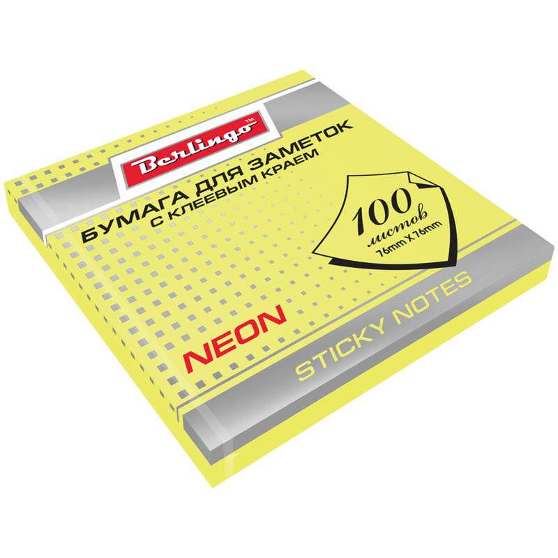 Главная / Товары / КАНЦТОВАРЫ / УПАКОВКА / ХОЗ ТОВАРЫ / РАСХОДНЫЕ МАТЕРИАЛЫ / Канцелярские товары - Офисные / Бумажная продукция для офиса / Бумага для заметок, блокноты, записные книжки / Блоки самоклеящиеся / Самоклеящийся блок Berlingo, 76*76мм, 100л, желтый неон