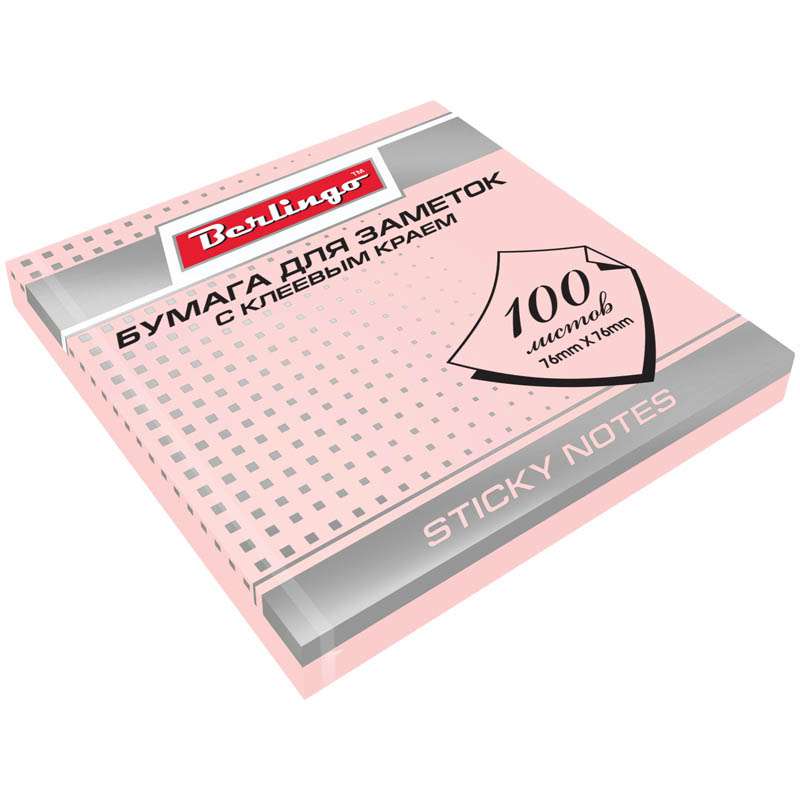 Главная / Товары / КАНЦТОВАРЫ / УПАКОВКА / ХОЗ ТОВАРЫ / РАСХОДНЫЕ МАТЕРИАЛЫ / Канцелярские товары - Офисные / Бумажная продукция для офиса / Бумага для заметок, блокноты, записные книжки / Блоки самоклеящиеся / Самоклеящийся блок Berlingo, 76*76мм, 100л, розовый