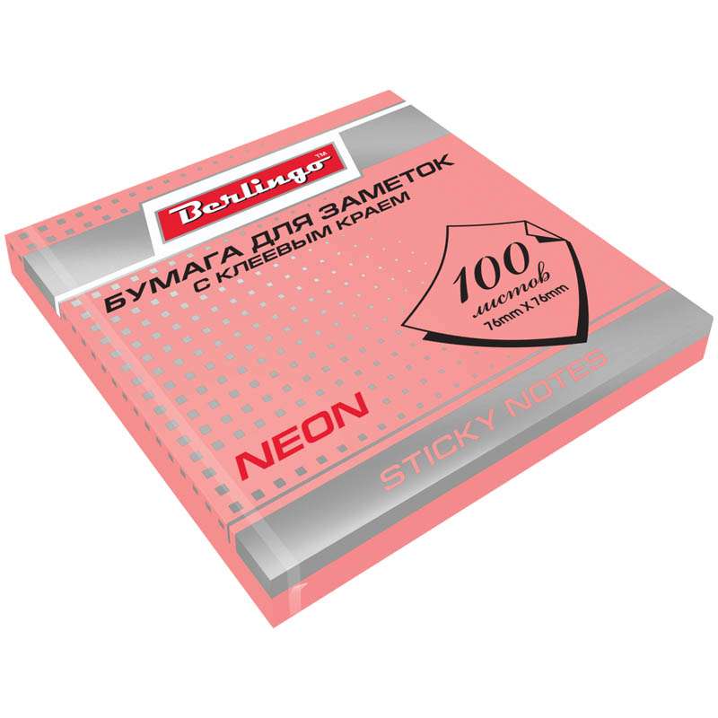 Блок бумаги с клеевым краем рассчитанный на крепление к любой поверхности, не оставляет следов. Яркие неоновые цвета. Размер блока - 76 × 76 мм. В блоке 100 листов. Индивидуальная упаковка в пленку.Самоклеящийся блок Berlingo, 76*76мм, 100л, розовый неон