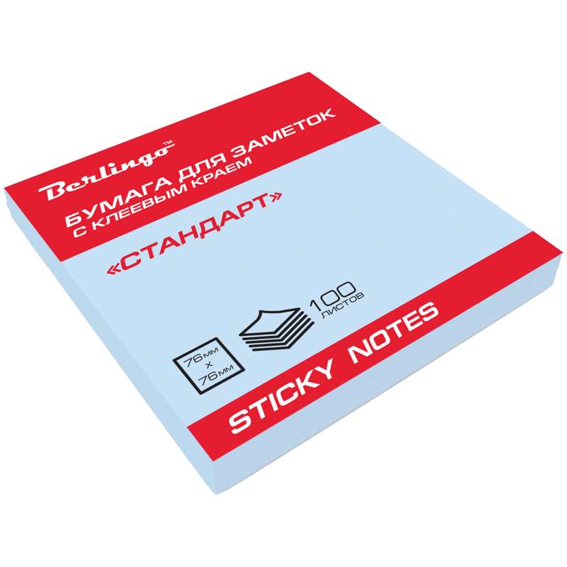 Главная / Товары / КАНЦТОВАРЫ / УПАКОВКА / ХОЗ ТОВАРЫ / РАСХОДНЫЕ МАТЕРИАЛЫ / Канцелярские товары - Офисные / Бумажная продукция для офиса / Бумага для заметок, блокноты, записные книжки / Блоки самоклеящиеся / Самоклеящийся блок Berlingo "Стандарт", 76*76мм, 100л, голубой