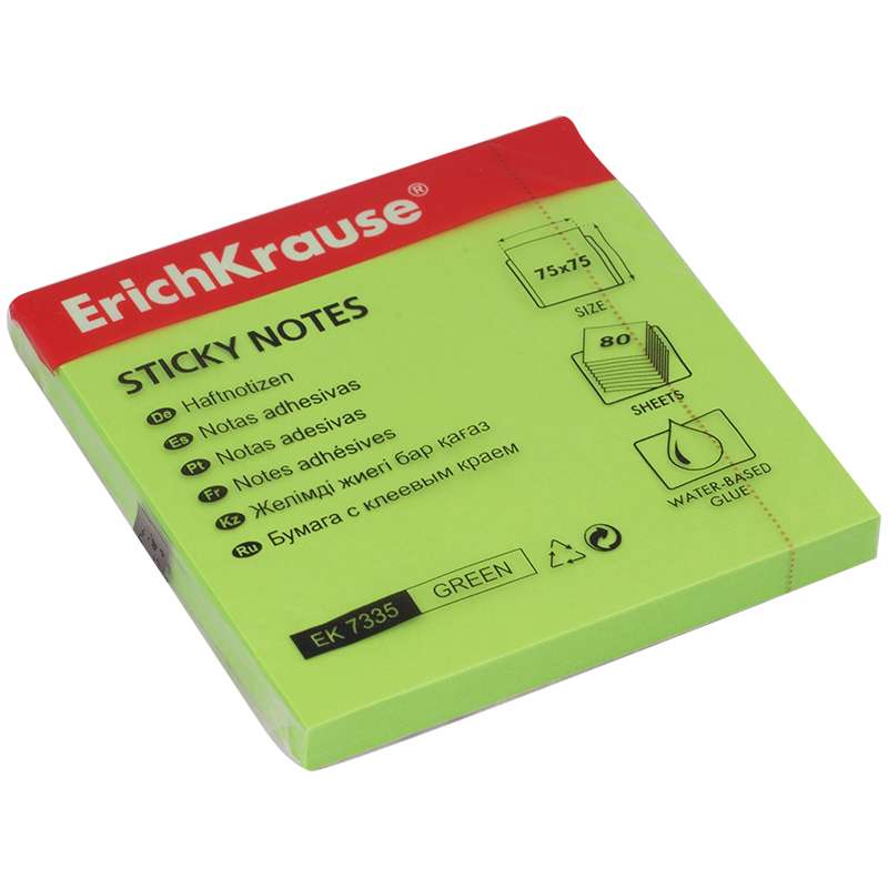 Самоклеящийся блок Erich Krause, 75*75мм, 80л, зелёный неон