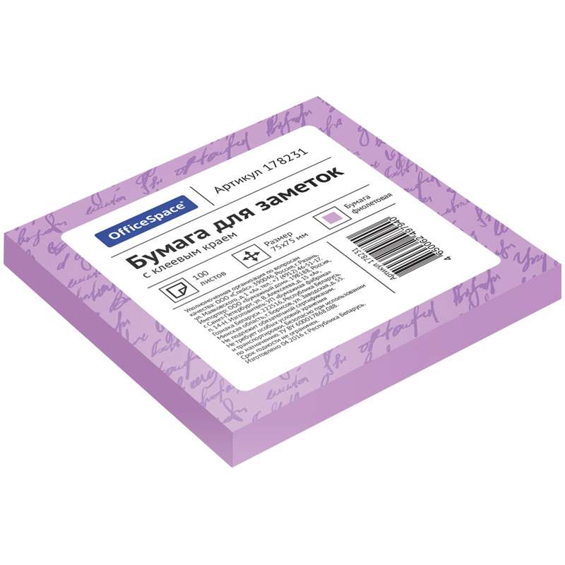 Главная / Товары / КАНЦТОВАРЫ / УПАКОВКА / ХОЗ ТОВАРЫ / РАСХОДНЫЕ МАТЕРИАЛЫ / Канцелярские товары - Офисные / Бумажная продукция для офиса / Бумага для заметок, блокноты, записные книжки / Блоки самоклеящиеся / Самоклеящийся блок OfficeSpace, 75*75мм, 100л, фиолетовый