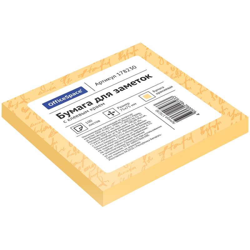 Главная / Товары / КАНЦТОВАРЫ / УПАКОВКА / ХОЗ ТОВАРЫ / РАСХОДНЫЕ МАТЕРИАЛЫ / Канцелярские товары - Офисные / Бумажная продукция для офиса / Бумага для заметок, блокноты, записные книжки / Блоки самоклеящиеся / Самоклеящийся блок OfficeSpace, 75*75мм, 100л, оранжевый