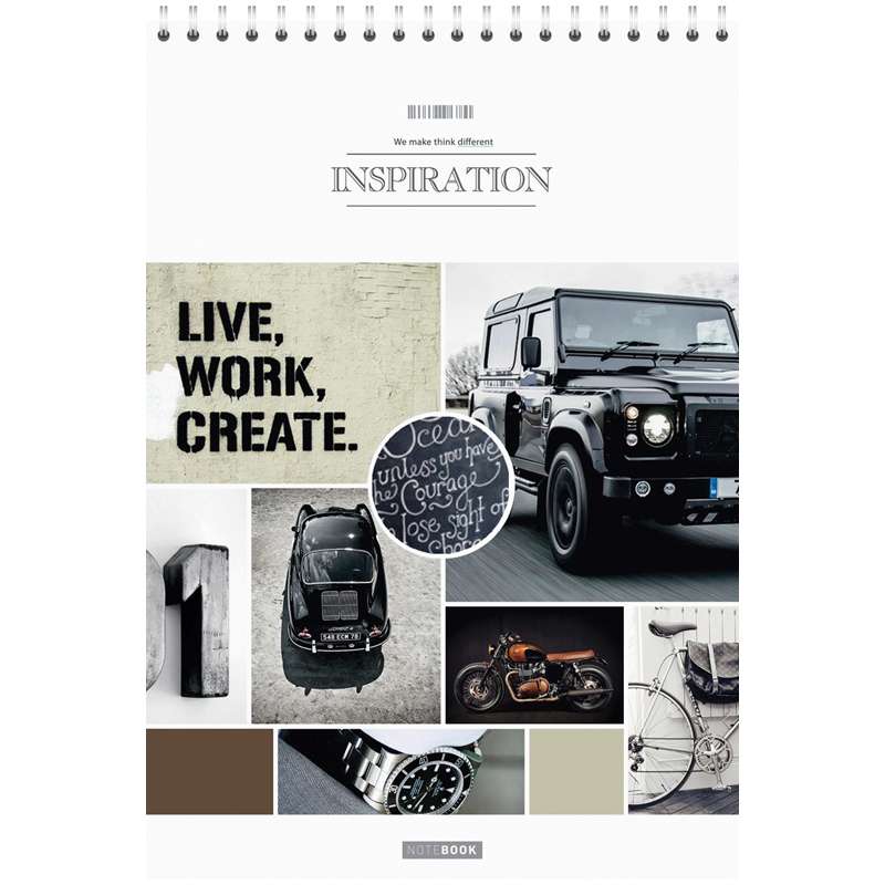 60 листов. Обложка – мелованный картон с глянцевым лаком. Внутренний блок – офсет 60 г/м2, клетка. Формат А4. Крепление – евроспираль.Блокнот А4 60л. на гребне "Стиль. Inspiration"