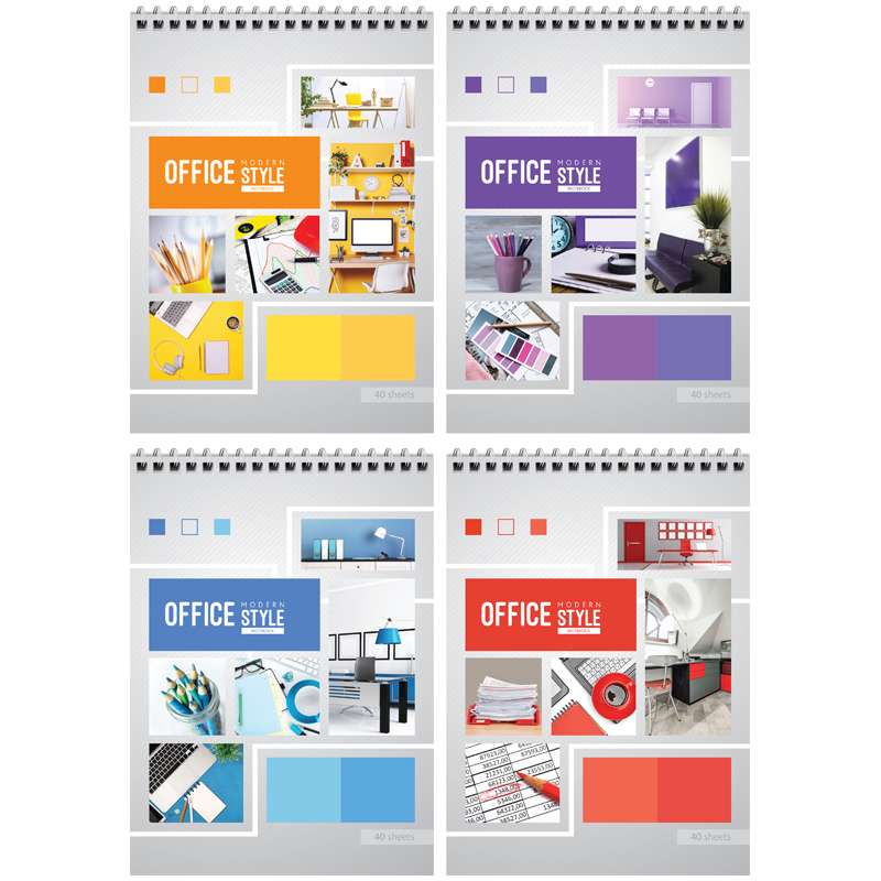 40 листов. Обложка – мелованный картон. Внутренний блок – офсет 60 г/м², клетка. Формат А5. Крепление – евроспираль.Блокнот А5 40л. на гребне ArtSpace "Офис. Яркие краски"