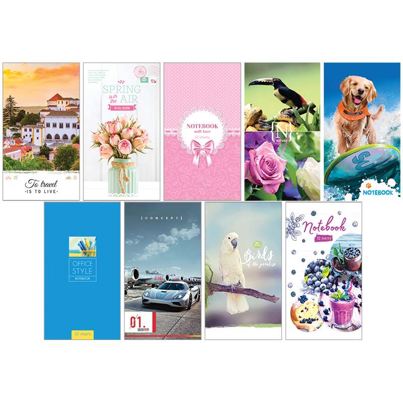 Внутренний блок – офсет 60 гр/м2 в клетку. Обложка – мелованный картон, ВД-лак. Объем блока – 32 л. Формат А6. Вид крепления -скрепкаБлокнот А6 32л. на скрепке "МИКС"