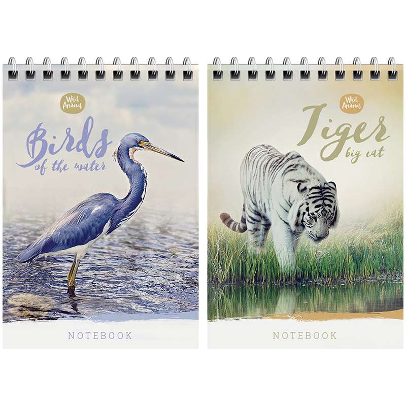 Блокнот формата A6 на евроспирали. Внутренний блок из 60 листов офсетной бумаги плотностью 60 г/м2, в клетку. Обложка изготовлена из мелованного картона.Блокнот А6 60л. на гребне "Животные. Wild animal"
