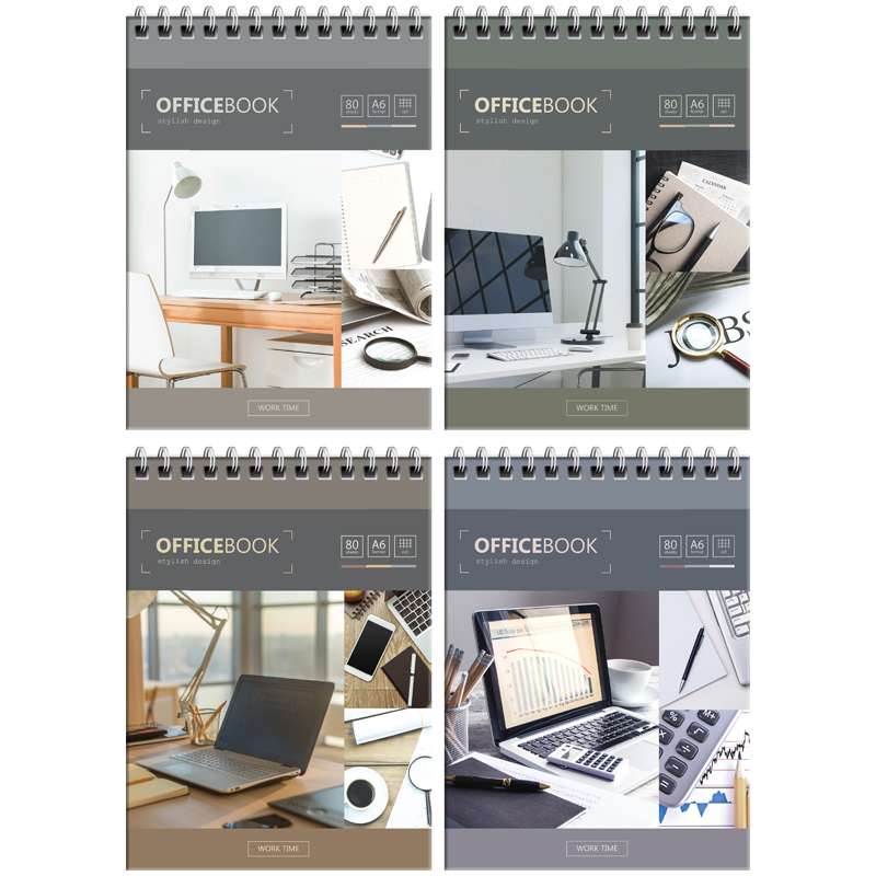Блокнот формата А6, 80 листов, в твердой обложке с глянцевой ламинацией. Внутренний блок - белая офсетная бумага плотностью 60 г/кв.м, в клетку без полей.Блокнот А6 80л. на гребне ArtSpace "Офис. Worktime", глянц. ламинация, твердая обложка