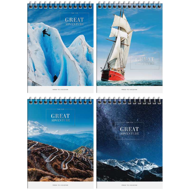 Блокнот формата А6, 80 листов, в твердой обложке с глянцевой ламинацией. Внутренний блок - белая офсетная бумага плотностью 60 г/кв.м, в клетку без полей.Блокнот А6 80л. на гребне ArtSpace "Путешествия. Great adventure", глянц. лам., фольга, тв. обложка