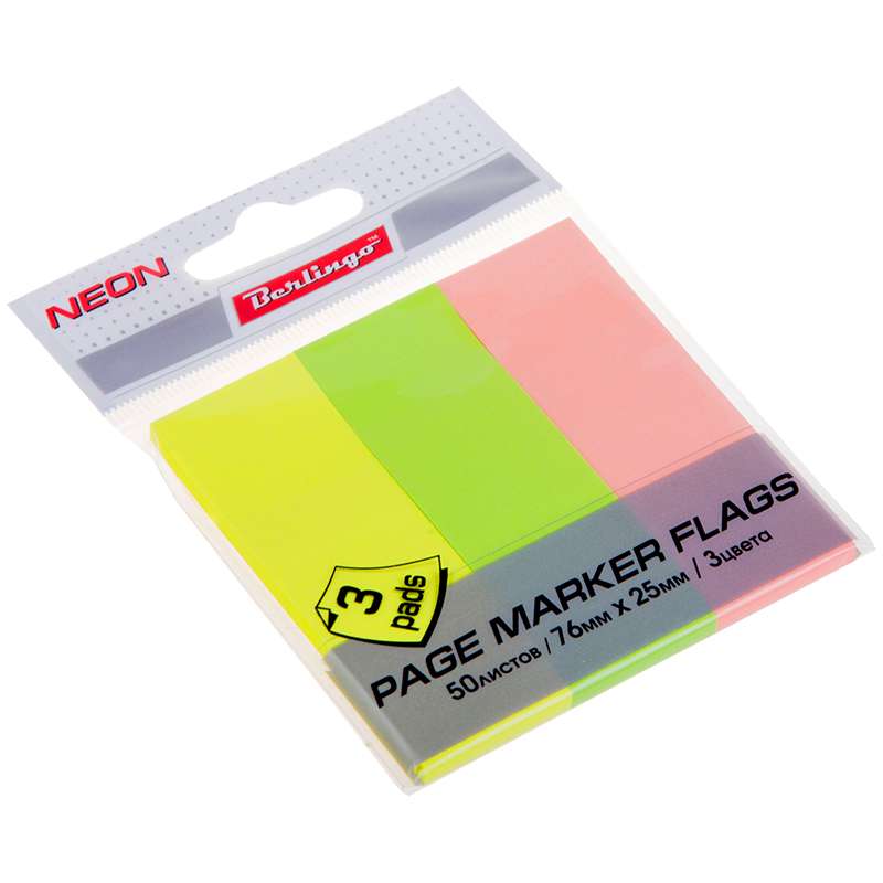 Главная / Товары / КАНЦТОВАРЫ / УПАКОВКА / ХОЗ ТОВАРЫ / РАСХОДНЫЕ МАТЕРИАЛЫ / Канцелярские товары - Офисные / Бумажная продукция для офиса / Бумага для заметок, блокноты, записные книжки / Закладки самоклеящиеся / Флажки-закладки Berlingo, 76*25мм, 50л*3 неоновых цвета, европодвес