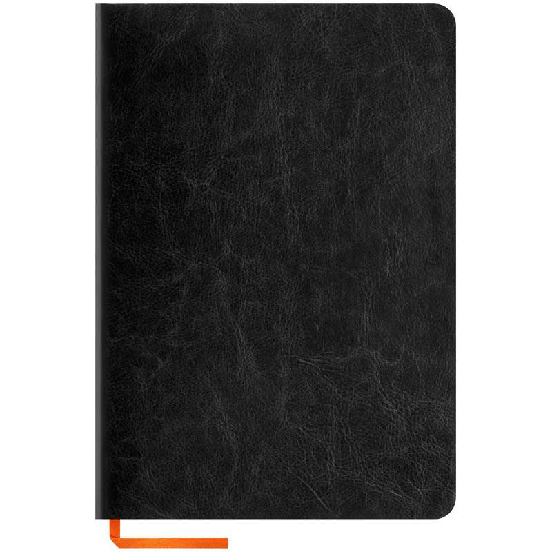 Стильная записная книжка с ярким цветным срезом и ультра-мягкой обложкой из 2 слоев высококачественного кожзаменителя. Подходит под персонализацию. Внутренний блок из высокачественной тонированной офсетной бумаги 70 г/м², клетка, пантонная печать. Прошитый блок. Срез блока, форзацы, закладка-ляссе и каптал – оранжевые. Индивидуальная упаковка.Записная книжка А5 120л. ЛАЙТ, кожзам, "Nebraska soft", черный, тонир.блок, ляссе, цв.срез