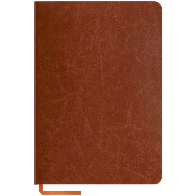 Стильная записная книжка с ярким цветным срезом и ультра-мягкой обложкой из 2 слоев высококачественного кожзаменителя. Подходит под персонализацию. Внутренний блок из высокачественной тонированной офсетной бумаги 70 г/м², клетка, пантонная печать. Прошитый блок. Срез блока, форзацы, закладка-ляссе и каптал – оранжевые. Индивидуальная упаковка.Записная книжка А5 120л. ЛАЙТ, кожзам, "Nebraska soft", коричневый, тонир.блок, ляссе, цв.срез