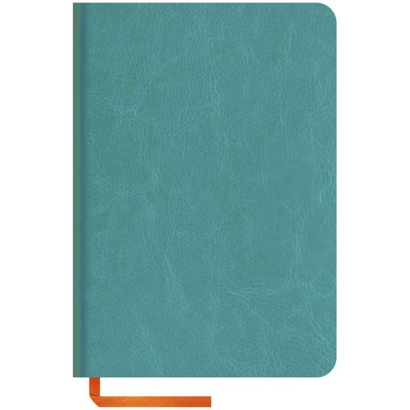 Стильная записная книжка с ярким цветным срезом и ультра-мягкой обложкой из 2 слоев высококачественного кожзаменителя. Подходит под персонализацию. Внутренний блок из высокачественной тонированной офсетной бумаги 70 г/м², клетка, пантонная печать. Прошитый блок. Срез блока, форзацы, закладка-ляссе и каптал – оранжевые. Индивидуальная упаковка.Записная книжка А6 120л. ЛАЙТ, кожзам, "Nebraska soft", бирюзовый, тонир.блок, ляссе, цв.срез