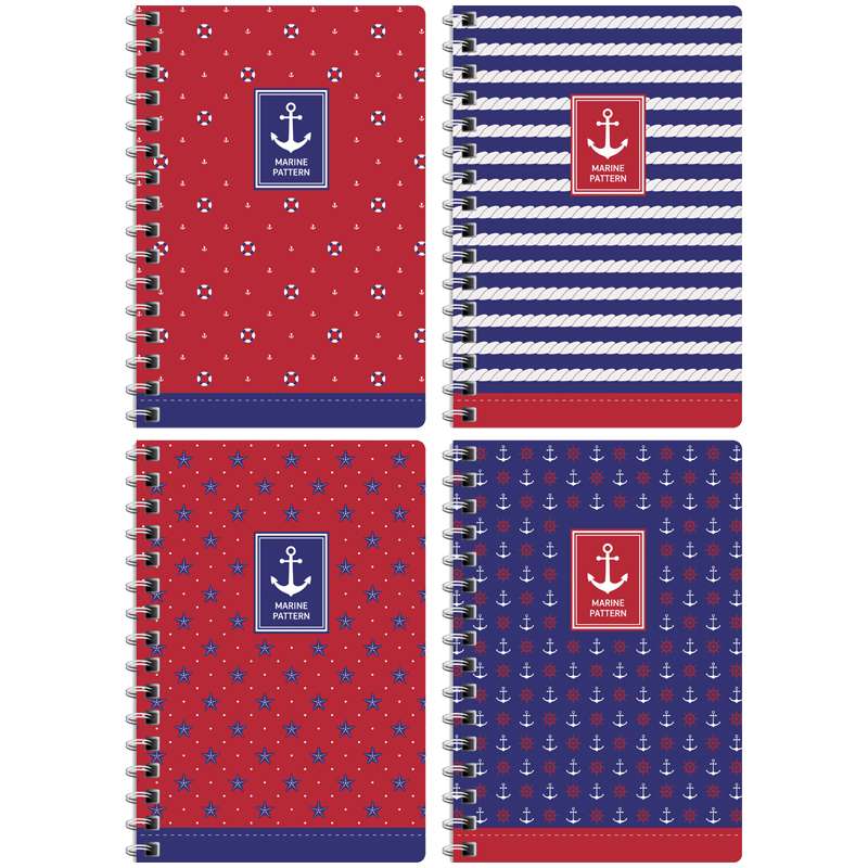 Формат А6. Вид крепления – гребень. Обложка – мелованный картон. Внутренний блок – офсет в клетку 60 г/м²Записная книжка А6 120л. на гребне "Узоры. Marine pattern"