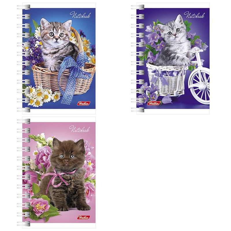 Формат А7. Вид крепления -гребень. Внутренний блок -офсет в клетку. Обложка -мелованный картонЗаписная книжка А7 40л. на гребне "Нежные котята"