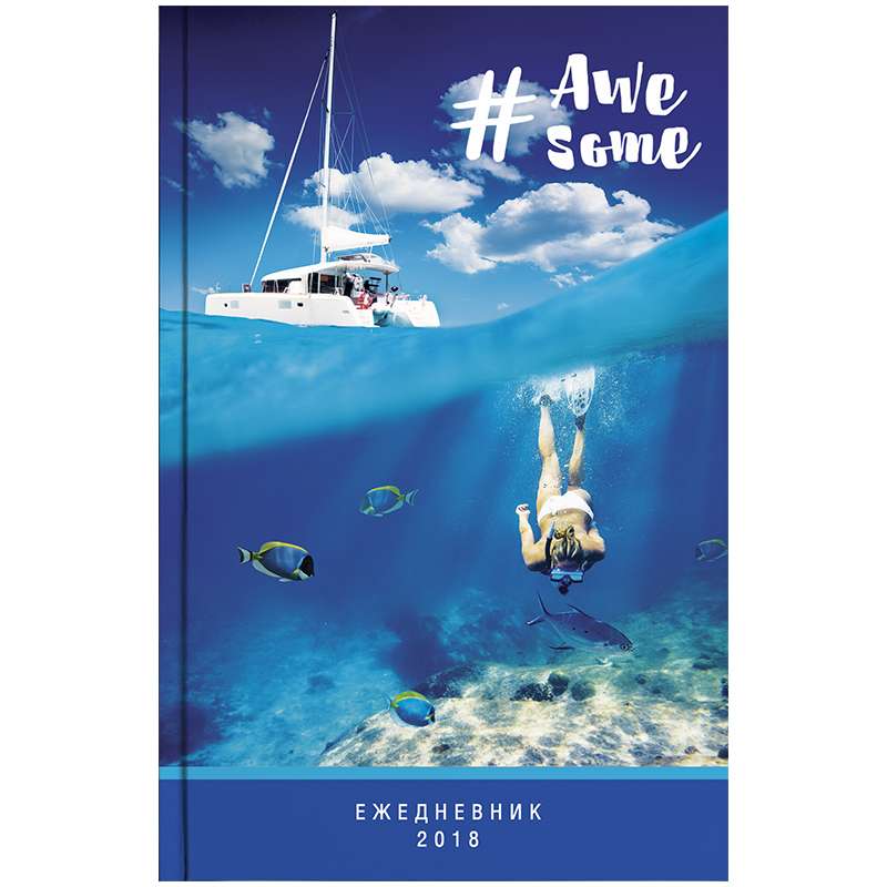 Незаменимый помощник для планирования встреч, звонков, переговоров. Отличный бизнес-аксессуар. Обложка - твердый картон, отделка глянцевой ламинацией. Удобный формат - А5. Прошитый переплет надежно держит блок. Блок 168 листов, офсет 100% белизны, плотность 60 гр/м2.Ежедневник датированный 2018г., A5, 168л. 7БЦ "Подводный мир", глянцевая ламинация