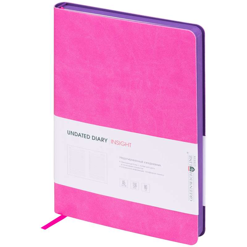 Главная / Товары / КАНЦТОВАРЫ / УПАКОВКА / ХОЗ ТОВАРЫ / РАСХОДНЫЕ МАТЕРИАЛЫ / Канцелярские товары - Офисные / Бумажная продукция для офиса / Деловое планирование / Ежедневники / Ежедневник недатированный, A5, 136л., кожзам, Greenwich Line "Insight", розовый, фиолетовый срез