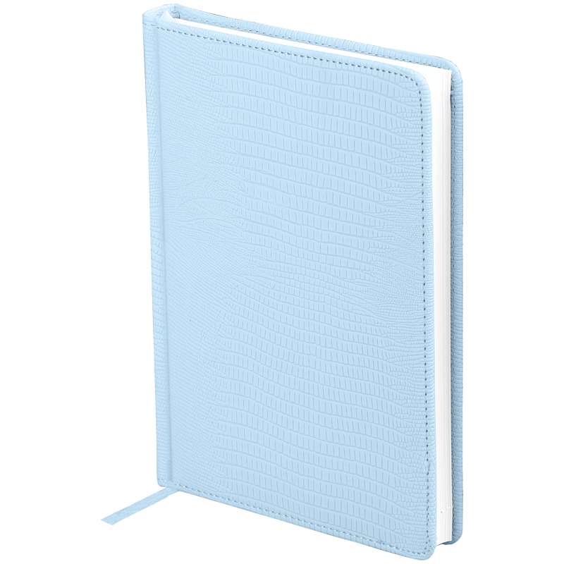 Ежедневник недатированный формата А5 из коллекции «Reptile». Обложка изготовлена из высококачественного кожзаменителя, имитирующего глянцевую змеиную кожу, с поролоновой прослойкой, цвет обложки - голубой. Подходит для всех видов полиграфического тиснения. Внутренний блок состоит из 160 листов офсетной бумаги плотностью 70 г/м2, печать блока в 2 краски, справочный материал. На форзацах географические карты России и Мира. Удобная закладка-ляссе и перфорированные уголки.Ежедневник недатированный, A5, 160л., кожзам, "Reptile", голубой