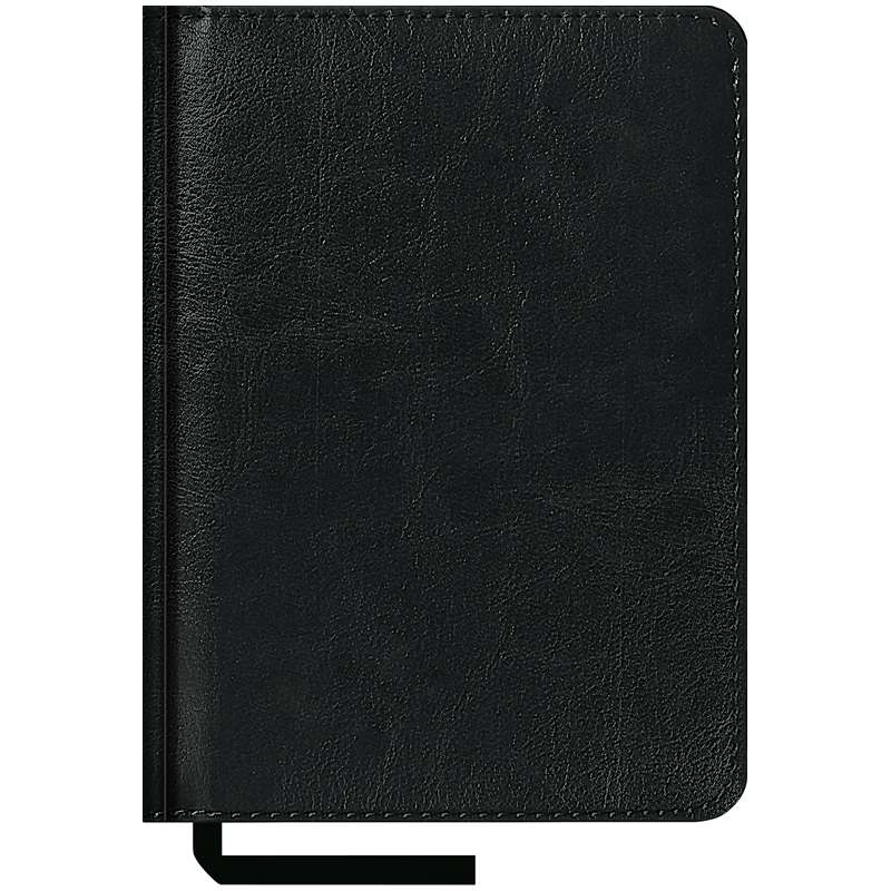 Недатированный ежедневник формата А6 из коллекции «Sarif». Обложка изготовлена из высококачественного импортного кожзаменителя с поролоновой прослойкой, цвет обложки - черный. Подходит для всех видов полиграфического тиснения. Внутренний блок состоит из 160 листов офсетной бумаги плотностью 70 г/м2, печать блока в 2 краски, справочный материал. На форзацах географические карты России и Мира. Удобная закладка-ляссе и перфорированные уголки.Ежедневник недатированный, A6, 160л., кожзам, "Sarif", черный
