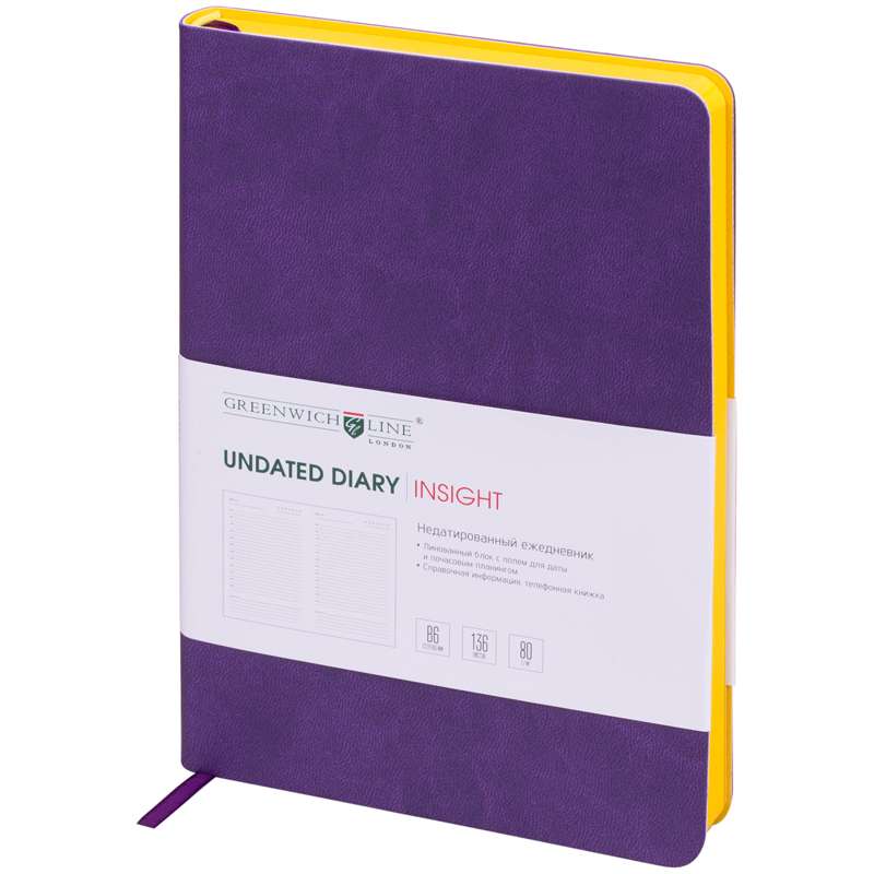 Главная / Товары / КАНЦТОВАРЫ / УПАКОВКА / ХОЗ ТОВАРЫ / РАСХОДНЫЕ МАТЕРИАЛЫ / Канцелярские товары - Офисные / Бумажная продукция для офиса / Деловое планирование / Ежедневники / Ежедневник недатированный, B6, 136л., кожзам, Greenwich Line "Insight", сиреневый, желтый срез