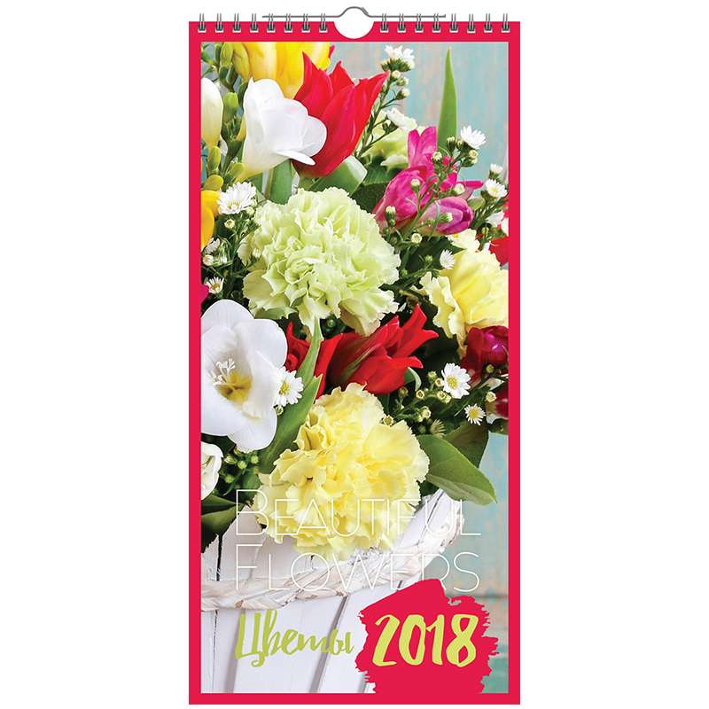 Календарь на 2018 год настенный перекидной на гребне. Размер календаря – 165×340 мм. Блок: • Материал – мелованная бумага. • Цветность – полноцветный. • Кол-во листов – 6. • Кол-во гребней – 1. Верхняя подложка: • Материал – мелованный картон. • Плотность – 275 гр/м2. • Цветность – полноцветная. Нижняя подложка: • Материал – мелованный картон. • Плотность – 220 гр/м2. • Цветность – полноцветная.Календарь настен. перекид. на гребне 16,5*34, 6 л. "Beautiful flowers", с ригелем, 2018 г.