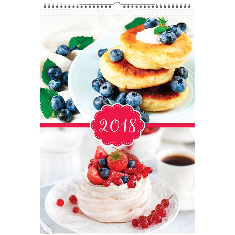 Календарь на 2017 год настенный перекидной на гребне. Размер календаря – 320×480 мм. Блок: • Материал – мелованная бумага. • Цветность – полноцветный. • Кол-во листов – 6. • Кол-во гребней – 1. Верхняя подложка: • Материал – мелованный картон. • Плотность – 280 гр/м2. • Цветность – полноцветная. Нижняя подложка: • Материал – мелованный картон. • Плотность – 220 гр/м2. • Цветность – полноцветная. Этот календарь для тех, кто любит готовить и баловать своих домочадцев вкусными десертами. На страницах представлены простые и быстрые в приготовлении кулинарные рецепты. Порадуйте своих любимых!Календарь настен. перекид. на гребне 32*48, 6 л. "Кондитерские рецепты", с ригелем, 2018 г.