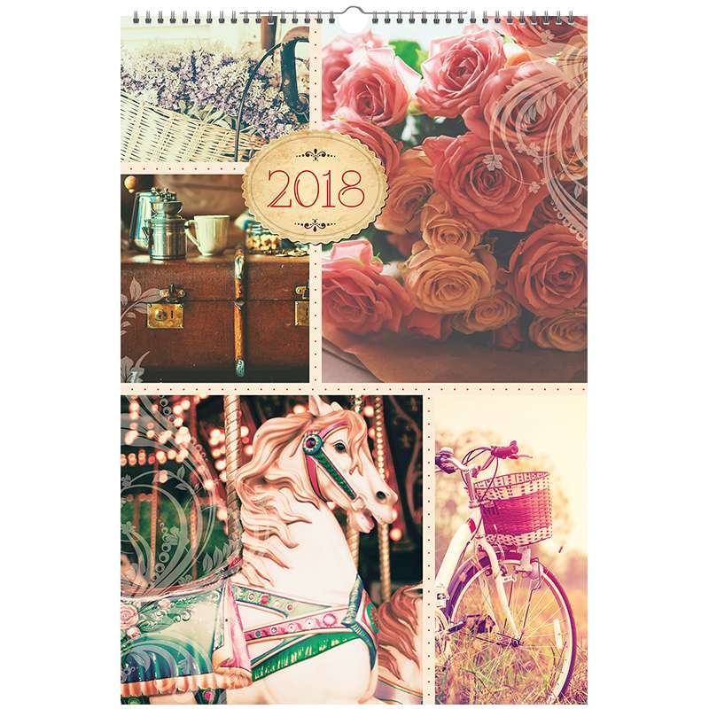 Календарь на 2017 год настенный перекидной на гребне. Размер календаря – 320×480 мм. Блок: • Материал – мелованная бумага. • Цветность – полноцветный. • Кол-во листов – 6. • Кол-во гребней – 1. Верхняя подложка: • Материал – мелованный картон. • Плотность – 280 гр/м2. • Цветность – полноцветная. Нижняя подложка: • Материал – мелованный картон. • Плотность – 220 гр/м2. • Цветность – полноцветная.Календарь настен. перекид. на гребне 32*48, 6 л. "Винтажный", с ригелем, 2018 г.