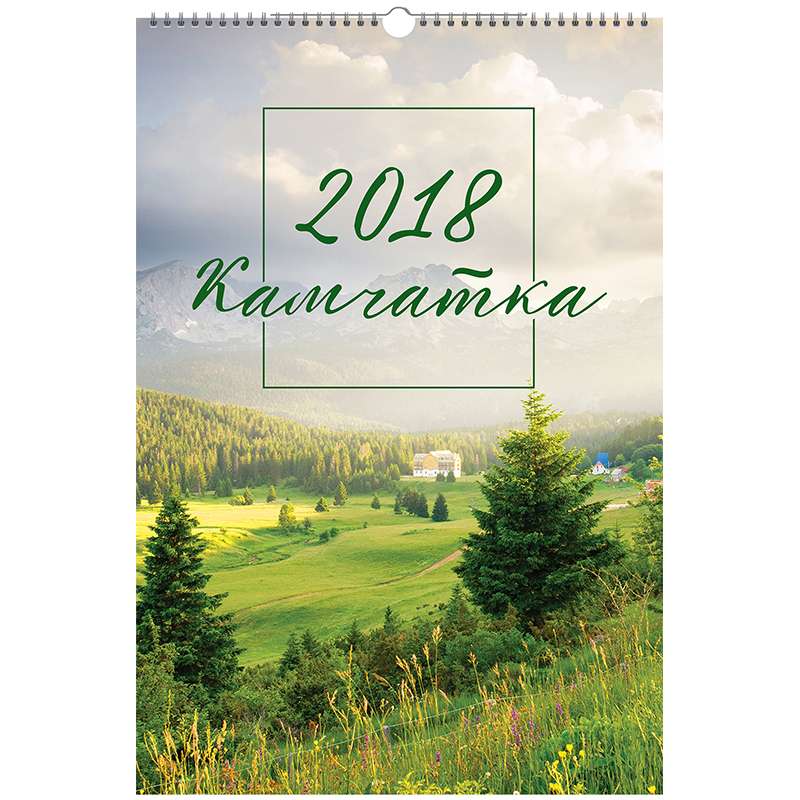 Календарь на 2018 год настенный перекидной на гребне. Размер календаря – 320×480 мм. Блок: • Материал – мелованная бумага. • Цветность – полноцветный. • Кол-во листов – 6. • Кол-во гребней – 1. Верхняя подложка: • Материал – мелованный картон. • Плотность – 280 гр/м2. • Цветность – полноцветная. Нижняя подложка: • Материал – мелованный картон. • Плотность – 220 гр/м2. • Цветность – полноцветная.Календарь настен. перекид. на гребне 32*48, 6 л. "Загадочная Камчатка", с ригелем, 2018 г.