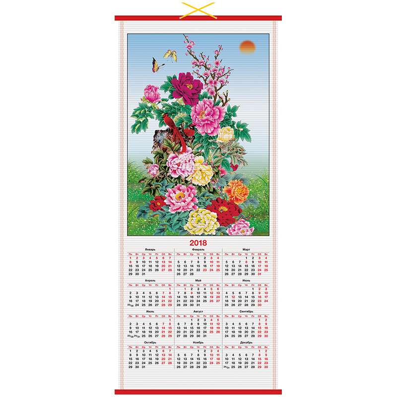 Календарь настенный на 2017 год «циновка». Размер календаря – 320×760 мм. Блок: • Материал – бумажная циновка. • Цветность – полноцветный. • Кол-во блоков – 1.Календарь настенный "циновка" "Цветы", 2018 г.