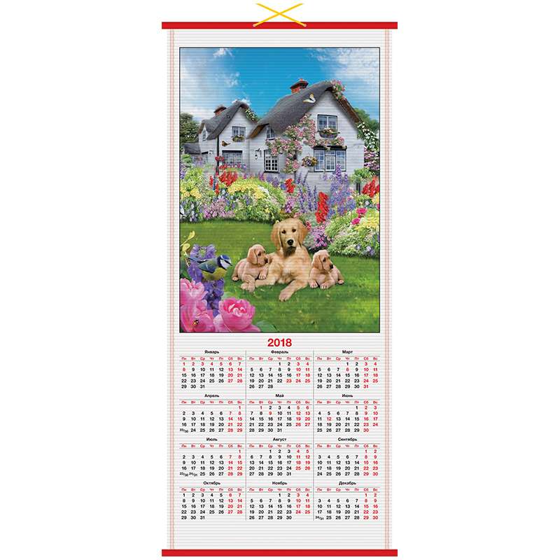 Календарь настенный на 2017 год «циновка». Размер календаря – 320×760 мм. Блок: • Материал – бумажная циновка. • Цветность – полноцветный. • Кол-во блоков – 1.Календарь настенный "циновка" "Символ года", 2018 г.